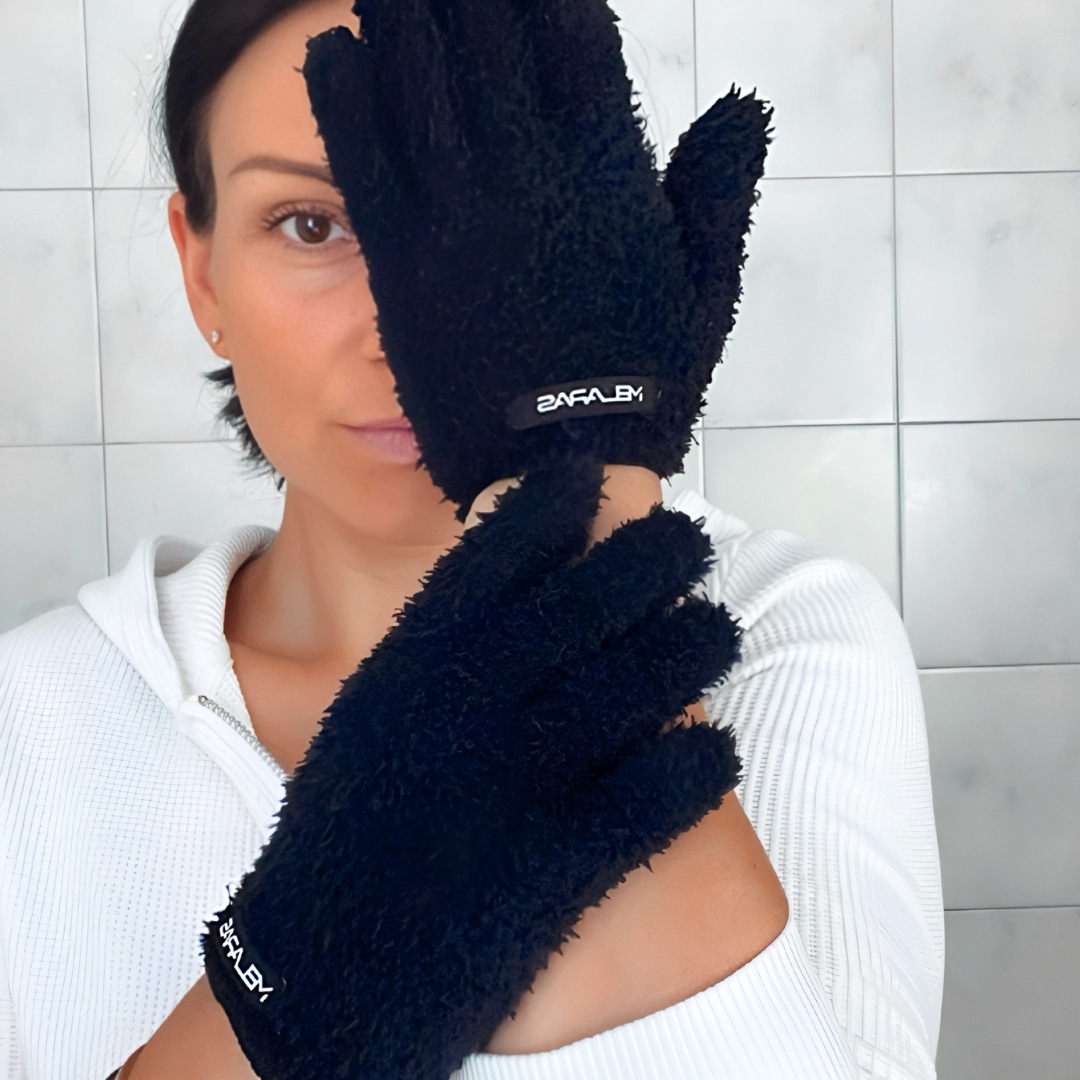 Unsere Handschuhe bestehen aus ultrafeiner Mikrofaser mit spezieller Split-Fiber-Technologie – für eine sanfte, aber gründliche Reinigung deiner Haut, ganz ohne Chemie.